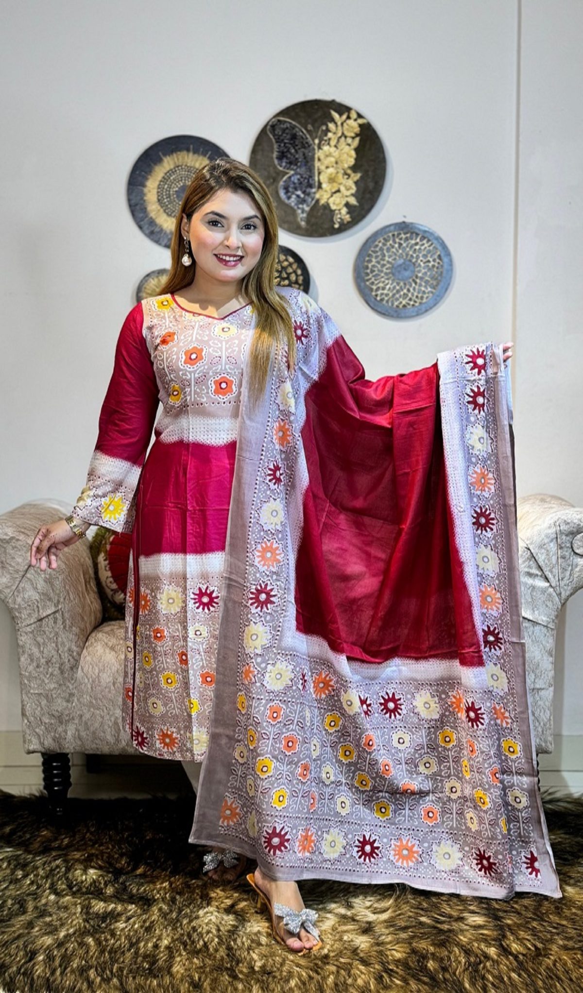 👉-আনস্টিচ প্রিমিয়াম কটন থ্রি পিস সেট=জামা + ওড়না + সালোয়ার”